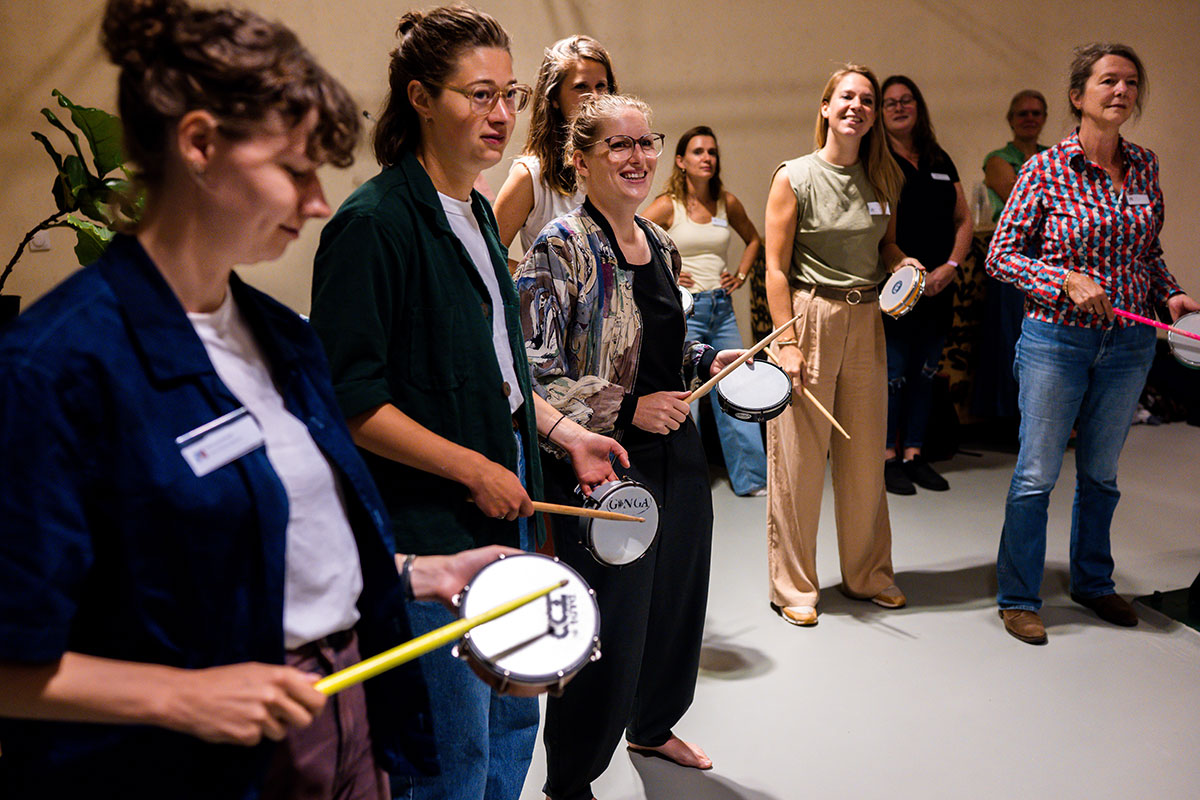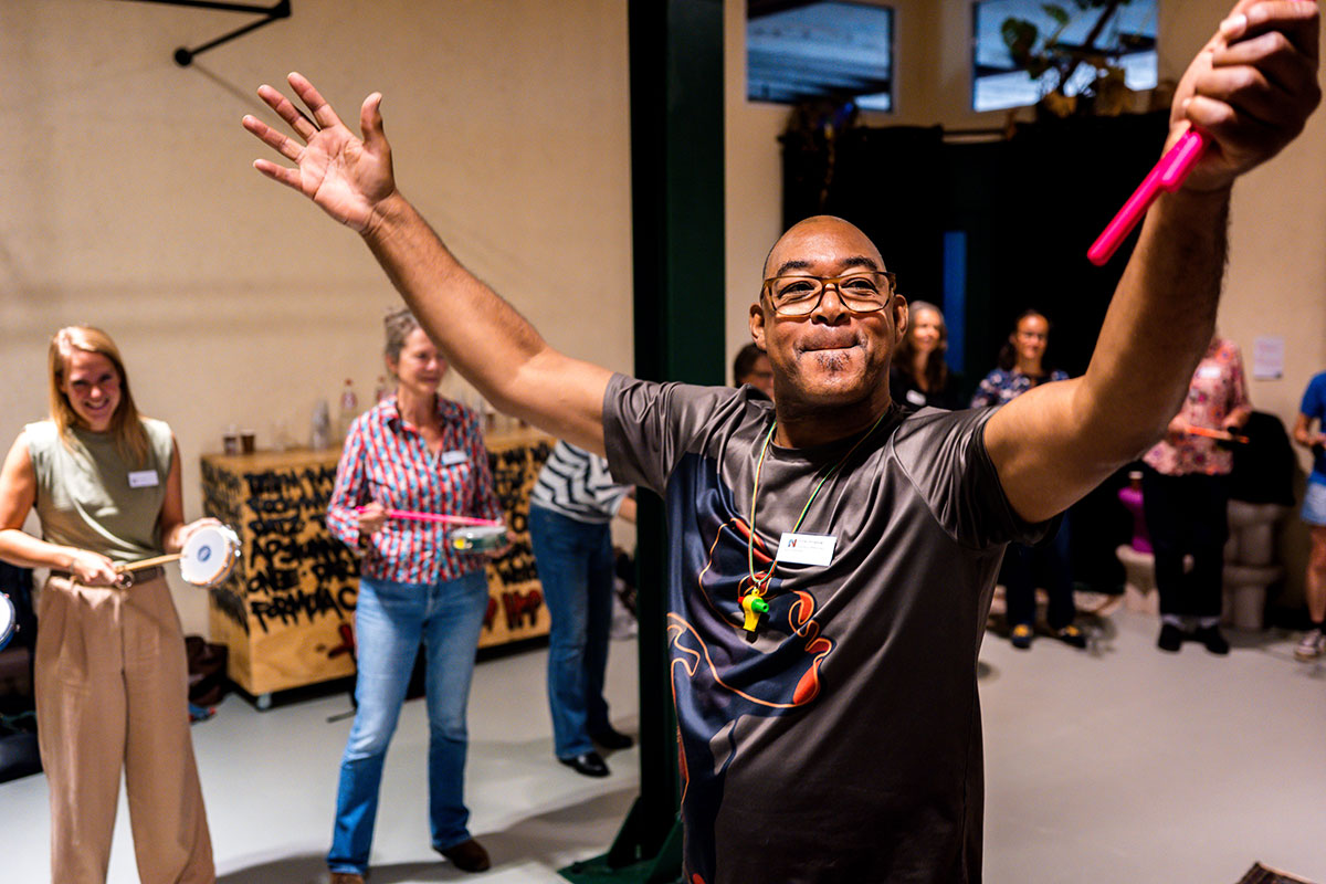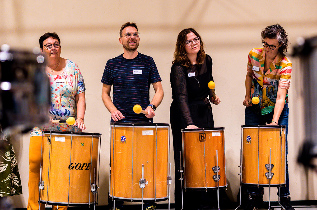 Bij binnenkomst stonden diverse Braziliaanse slaginstrumenten te wachten in de ruimte: van Braziliaanse bel met hoge noten tot de Surdo, een grote trommel die het ritme bepaald. Genoeg instrumenten om iedereen in de groep mee te laten doen. De grootste les van Sherwin? Durf fouten te maken, en doe dat met overgave. Alleen zo kun je leren.