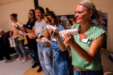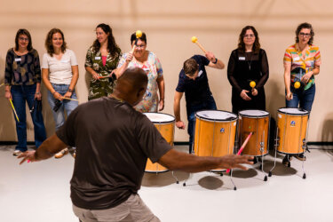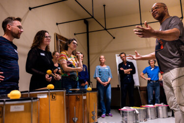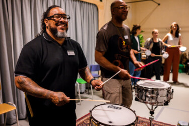 Dag en nacht, de vier seizoenen, adem in, adem uit en je hartslag: ons leven zit vol met ritme. In de workshop van Sherwin Kirindongo, van Musicians Without Borders konden we aan den lijve ervaren hoe het ritme van muziek in een mum van tijd verbinding tot stand brengt. Hieronder vind je een aantal tips om hier als muziekdocent mee ‘aan de slag’ te gaan.