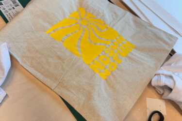 ‘En, hoe was het?’ ‘Jaaa, ging supergoed man!’ Zinnetjes die Gabriela minstens acht keer hoorde, tijdens de workshops zeefdruk die ze in juni gaf op het Creative College in Amersfoort. ‘Ik weet niet of het ROC dit bewust zo had gepland, maar op de dag van mijn workshops hadden de studenten ook de presentaties van hun eindexamenproject,’ vertelt Gabriela. ‘En dat pakte zo mooi uit! In plaats van zenuwachtig wachten tot je aan de beurt bent, konden de studenten nu lekker praktisch aan de slag met het maken van een t-shirt of totebag.’