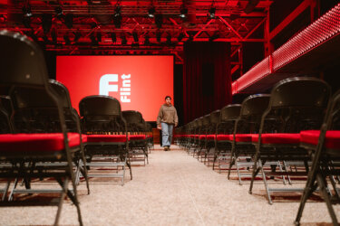 Vlak voordat de deuren opengaan staat een groepje studenten met elkaar te overleggen. Gevraagd of alles goed gaat zegt een van hen: ‘Nou, een vriendin zou lunch voor ons halen en dat is mislukt. Maar voor de rest loopt alles goed. Oh ja, en de voorstelling van Dox gaat dus niet door,’ zegt ze er luchtig achteraan. Ongeveer 24 uur geleden kreeg Bo een telefoontje met het nieuws dat Dox de voorstelling moest annuleren, vanwege ziekte bij een van de spelers. ‘Daar hadden we dus niet over nagedacht,’ vertelt ze. Gelukkig heeft Flint wel een licentie kunnen regelen voor een alternatief: de film ‘Night of the Kings’. ‘Zo kan het event gelukkig gewoon doorgaan. Want alles cancellen, dat was toch echt wel verschrikkelijk geweest,’ zegt Bo.