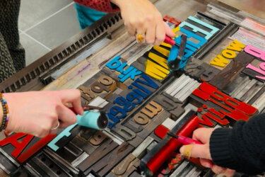 Als afsluiting reizen de deelnemers terug de tijd in naar de oorsprong van het ‘genereren van tekst’: de boekdrukkunst, oftewel een drukpers op basis van losse letters. Onder begeleiding van Tine Risselada van het Stadsatelier maken deelnemers een poster van alle opgedane inzichten en ideeën. ‘Leuk om te ontdekken dat je een chatbot niet alleen voor je vakanties of recepten kan gebruiken,’ reageert Gaby Willemsteijn, ICC’er bij de Berkenschool. ‘En dat een goede uitleg aan de chatbot ook een goed antwoord kan genereren, en zo tot tot écht leuke creatieve opdrachten kunt komen.’